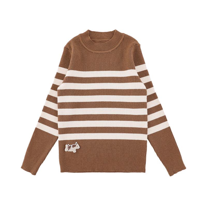 This stylish and warm girls' sweater features a comfortable half-high neck and a charming striped pattern. Made from soft knit material, it's perfect for casual wear during the 2025 winter season. Available in various colors and sizes for ages 1-9 years.