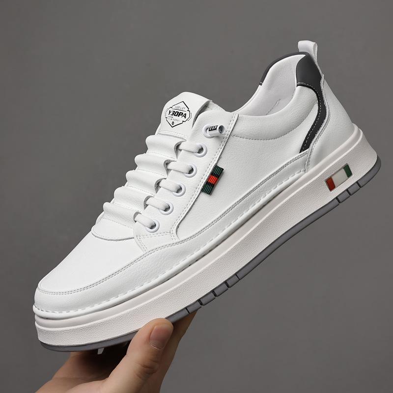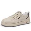 2025 Men's Casual Low-Top Leather Sneakers - Soft Sole, Trendy Cowhide, Versatile White Design
