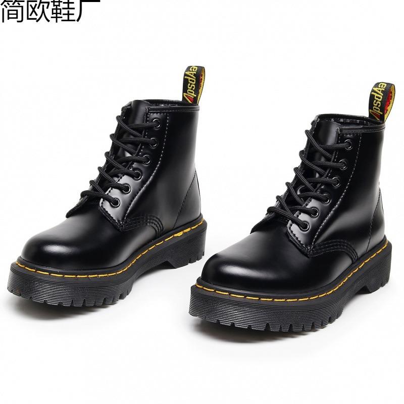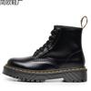 Locomotive boots women's 6-hole open-edged beads medium thick-soled couple short boots men's and women's boots hard leather round