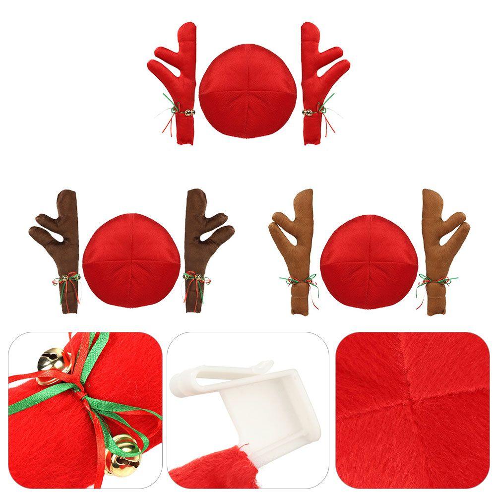 Christmas Car Decoration Antlers Red Nose Set Reindeer Decoration Vehicle Red Nose Elk Horn Decor Set