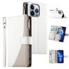 For iPhone 13 Pro Case Zipper Pocket Wallet Color Splicing Leather Flip Phone Cover with Straps