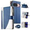 Leather Case For Google Pixel 10 Pro/10/9 Pro/9 Zipper Wallet Color Splicing Flip Phone Cover with Straps