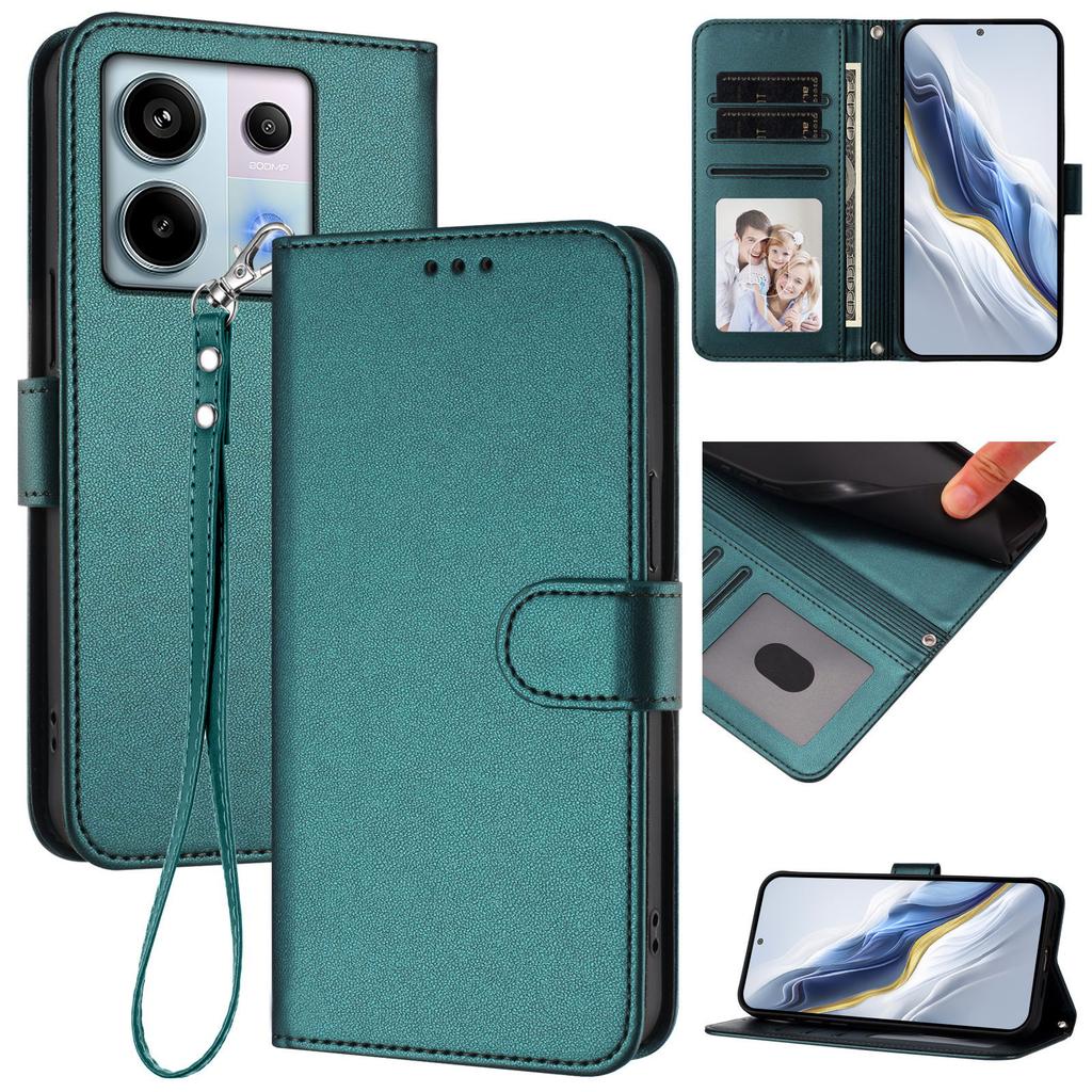 For Xiaomi Poco X6 5G/Xiaomi Redmi Note 13 Pro 5G Leather Case Wallet Stand Phone Cover with Wrist Strap