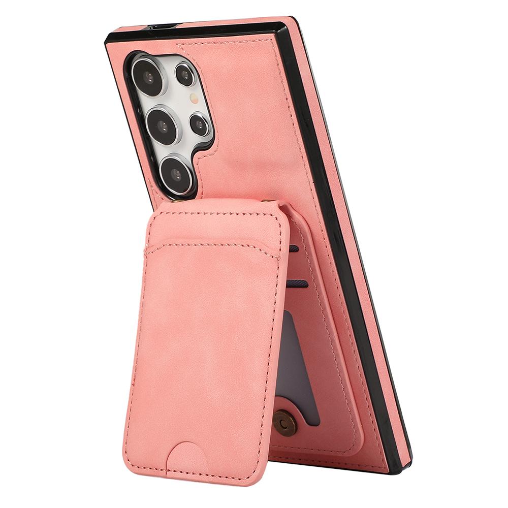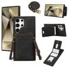 For Samsung Galaxy S25 Ultra Case Card Holder Kickstand Leather + TPU Phone Cover with Shoulder Strap
