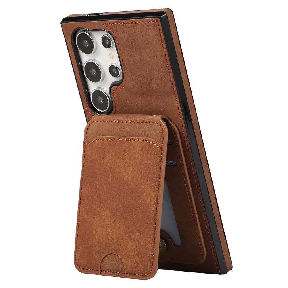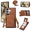 For Samsung Galaxy S24 Ultra Case Card Holder Kickstand Leather + TPU Phone Cover with Shoulder Strap