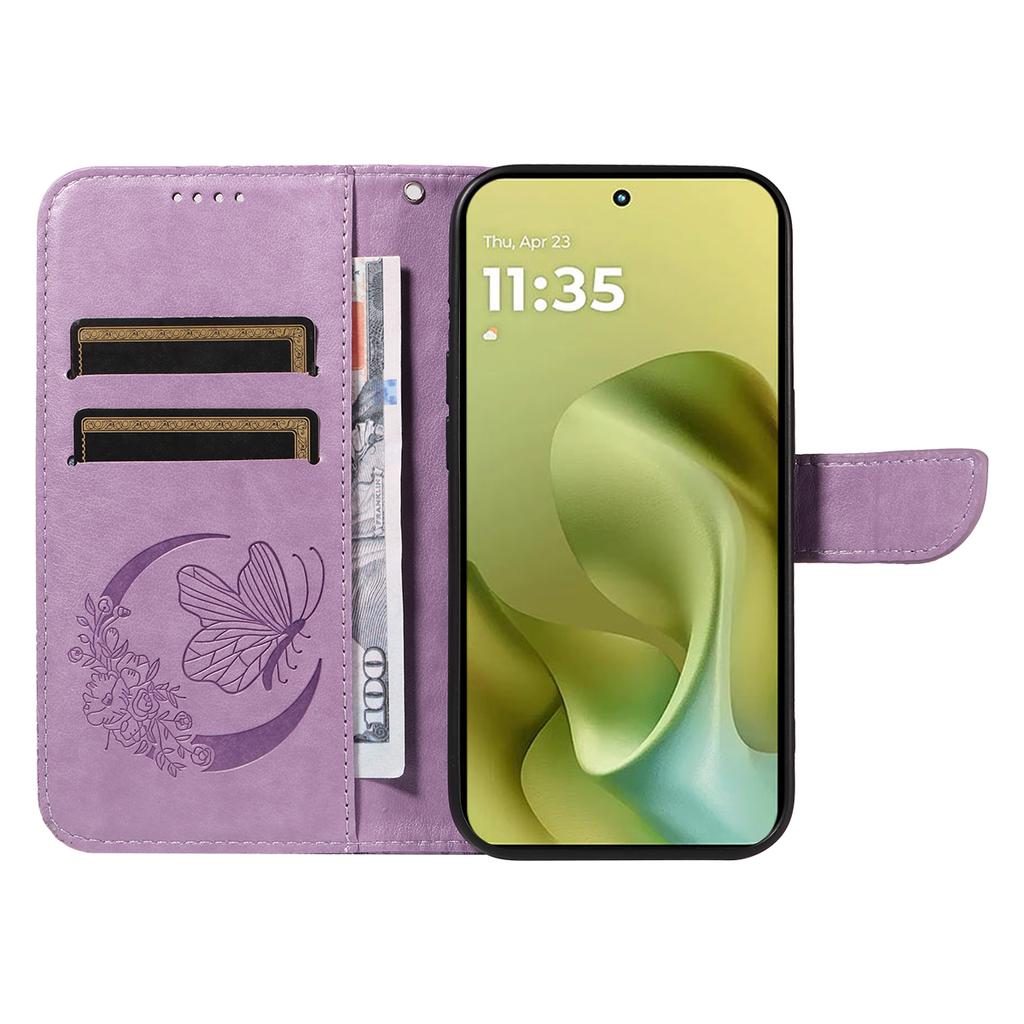 For Motorola Moto G86 5G/G86 Power 5G Case Butterfly Pattern PU Leather Folio Flip Phone Cover - Light Purple