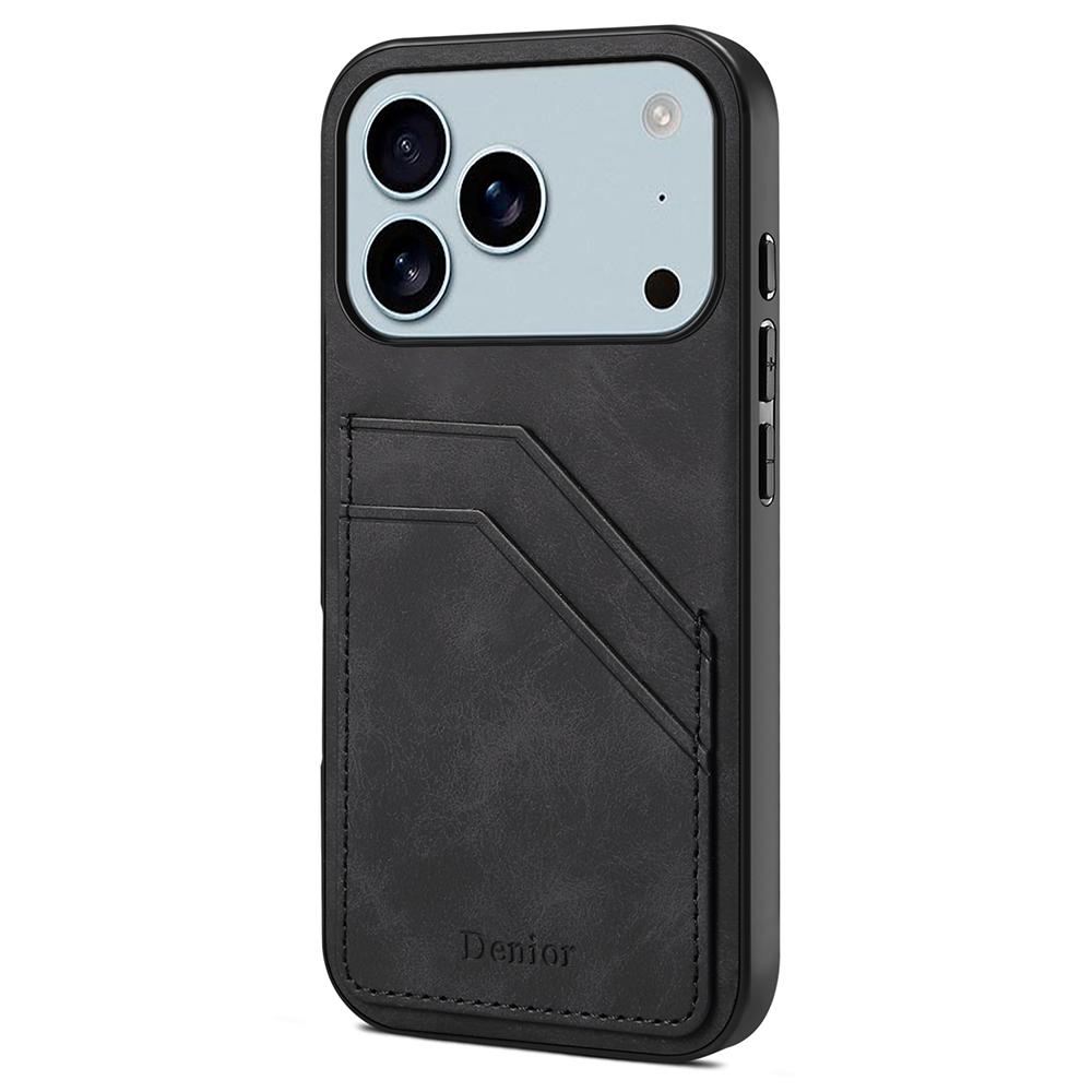 DENIOR For iPhone 17 Pro Case Dual Card Slots PU Leather + TPU + PC Phone Cover