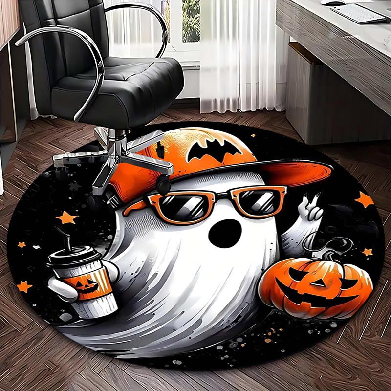 1pc Halloween Ghost with Pumpkin Coffee Cup Round Carpet, Office Chair Mat, Non Slip Rug for Home Decor, Gift, Office, Living Room, Bedroom