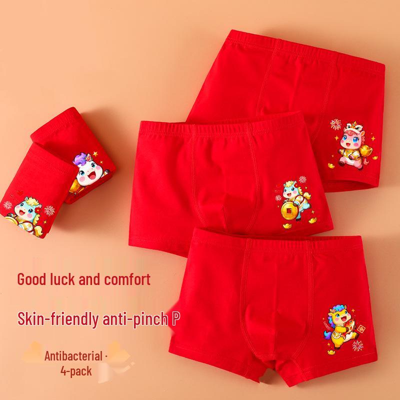 Boys' Zodiac Year 2026 Red Underwear: Comfortable, Breathable, Antibacterial Shorts