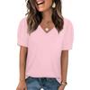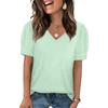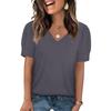 Women's Fashion Casual V- Neck Short Sleeve Color Shirt Women's Up Tops