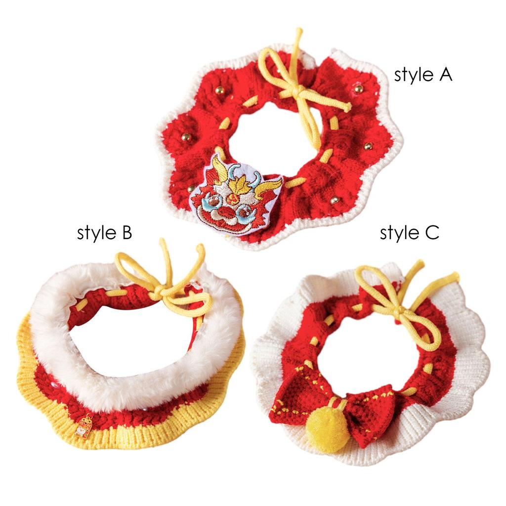 New Year Knitted Cats Collar Photo Props Decorative Dress up Costume Knitted New Year Cat Collar for Small Dog Kitty Puppy