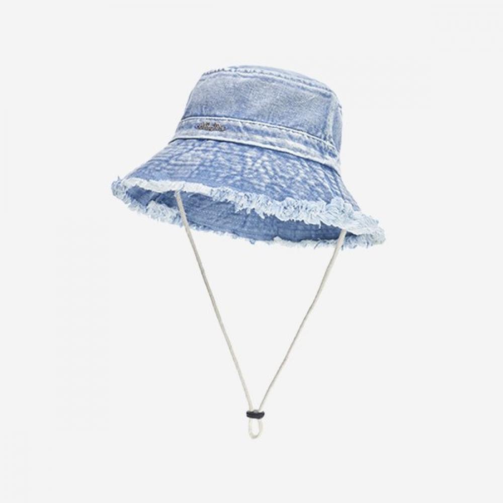 The Allincomplete Denim Bleaching Safari Hat is crafted from blue denim material, featuring a breathable structure ideal for summer use. Its safari hat style resembles that of a bucket hat or beret, making it versatile for daily outfits. Embroidery and logo details serve as style points, enhancing its appeal.