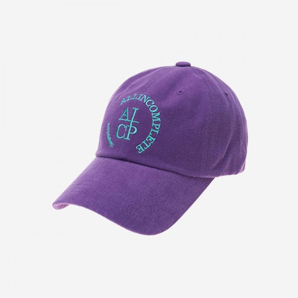 The All In Complete Round Logo Ball Cap in Purple is a stylish women's cap featuring a distinctive round logo design. It provides a unique pop of color with its purple shade and can be used as a sunshade or fashion accessory in a classic ball cap style. The fabric is presumed to be a mix of cotton and polyester, making it compatible with various styles.
