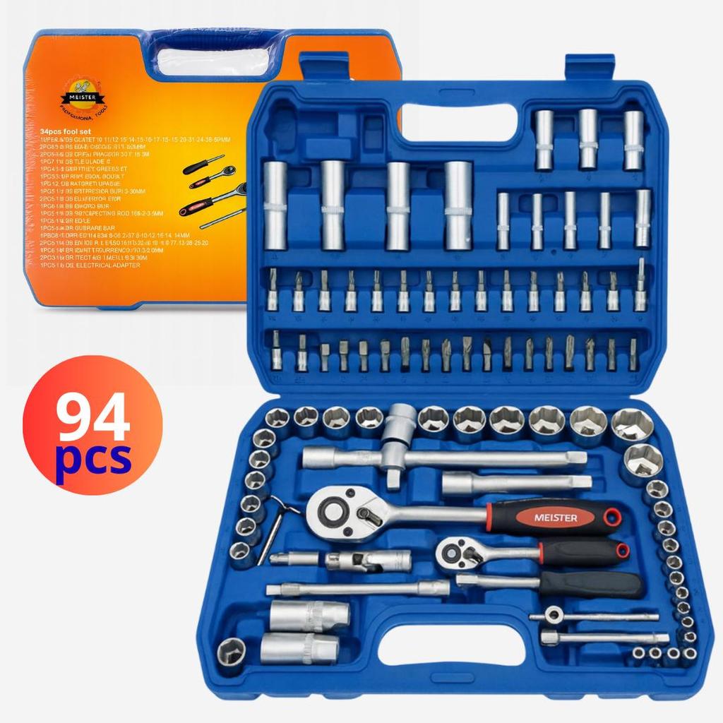 Wielofunkcyjny zestaw narzędzi 94 el. do naprawy samochodów, motocykli, rowerów, klucze nasadowe, śrubokręt – warsztat