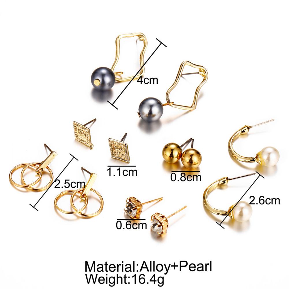 6 pairs Fashion Geometric Irregular Metal Pearl Pendant Earrings