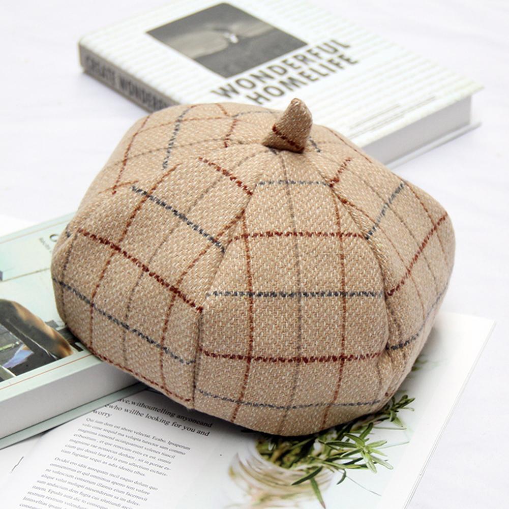 Lady Retro Plaid Beret Double Layer Painter Cap Autumn Winter Warm Berets