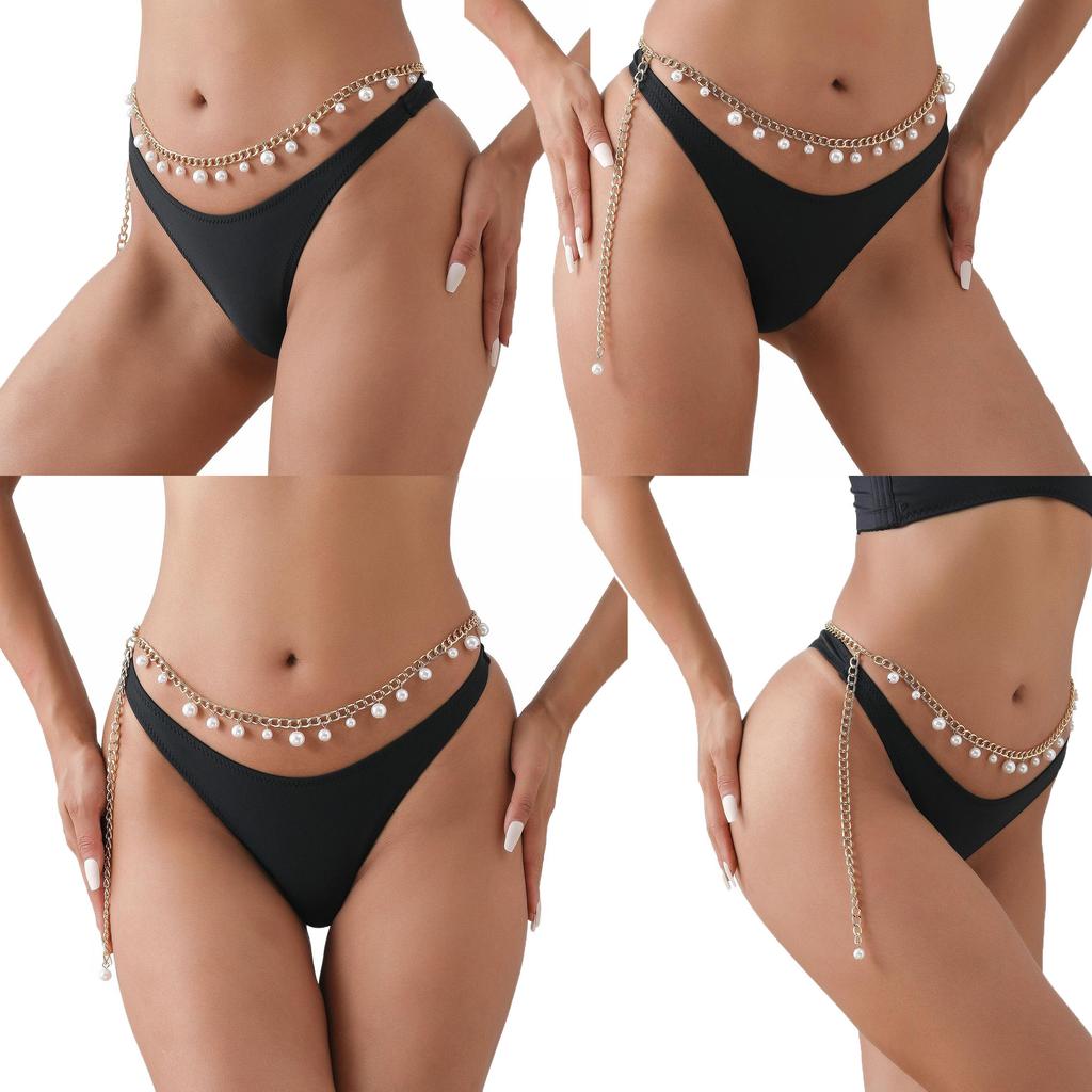 Women Waist Chains Adjustable Pearl Body Chain Trendy Waist Belly Chain Summer Beach Everyday Accessories