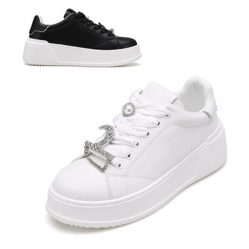 The [Misope] Women's Sneakers 012430701 features a 5cm height adjustment design with full cushioning for a comfortable fit. The quilted design adds a stylish look, and its superior cushioning is ideal for long wear. Available in two color options: black and white.
