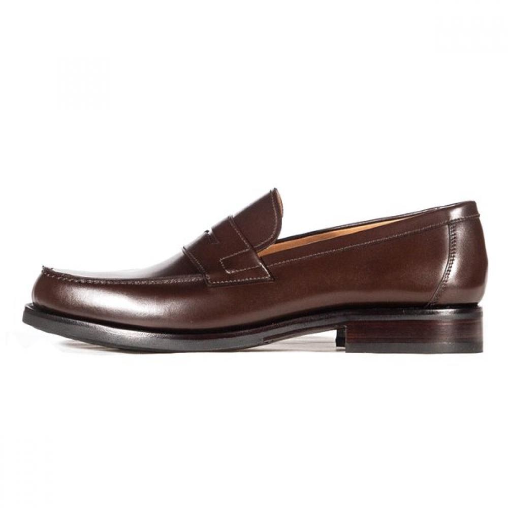 The Yanko Boston Boxcalf Marron is a men's shoe in a plain toe loafer style, characterized by its simple design without embellishment. It features U-tip detail in a penny loafer type, equipped with a slip-resistant outsole to provide comfort and stability. This product has waterproofing to allow it to be worn on rainy days, and a variety of sizes are available so that customers can select one that fits their own feet.