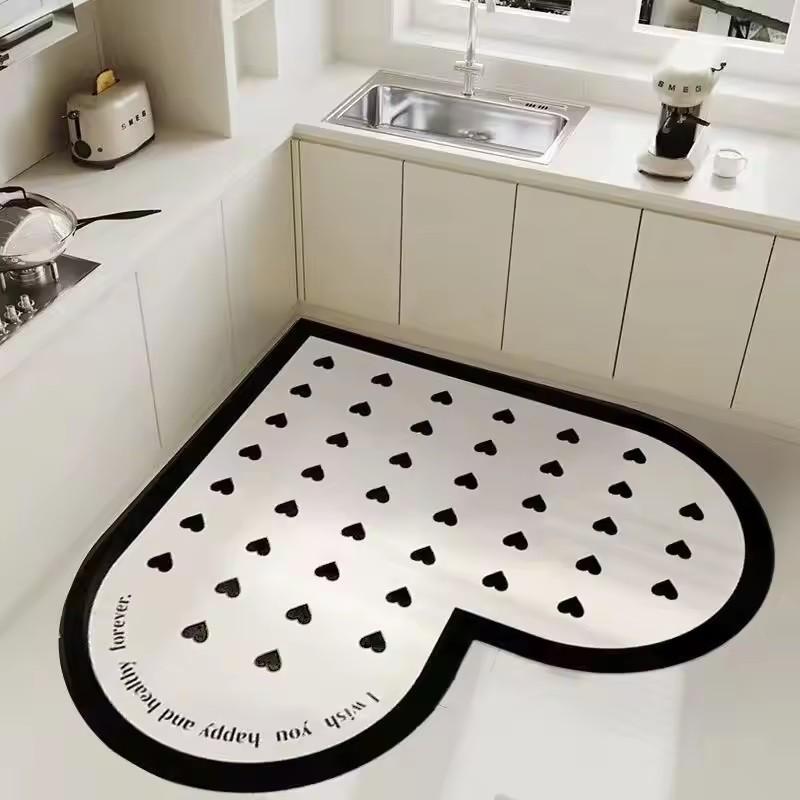 Kitchen Heart-shaped Carpet American Floral Pattern Water-absorbent Quick-drying Large Size Floor Mat Diatom Mud Non-slip Rug