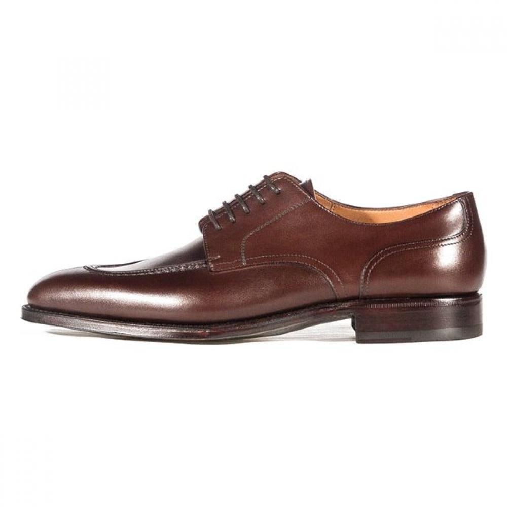 The Yanko Marron / Prime model features a unique design suitable for formal attire, boasting a classic pointed toe oxford style. The sophisticated U-tip detail stands out, making it a suitable choice for weddings and formal occasions.
