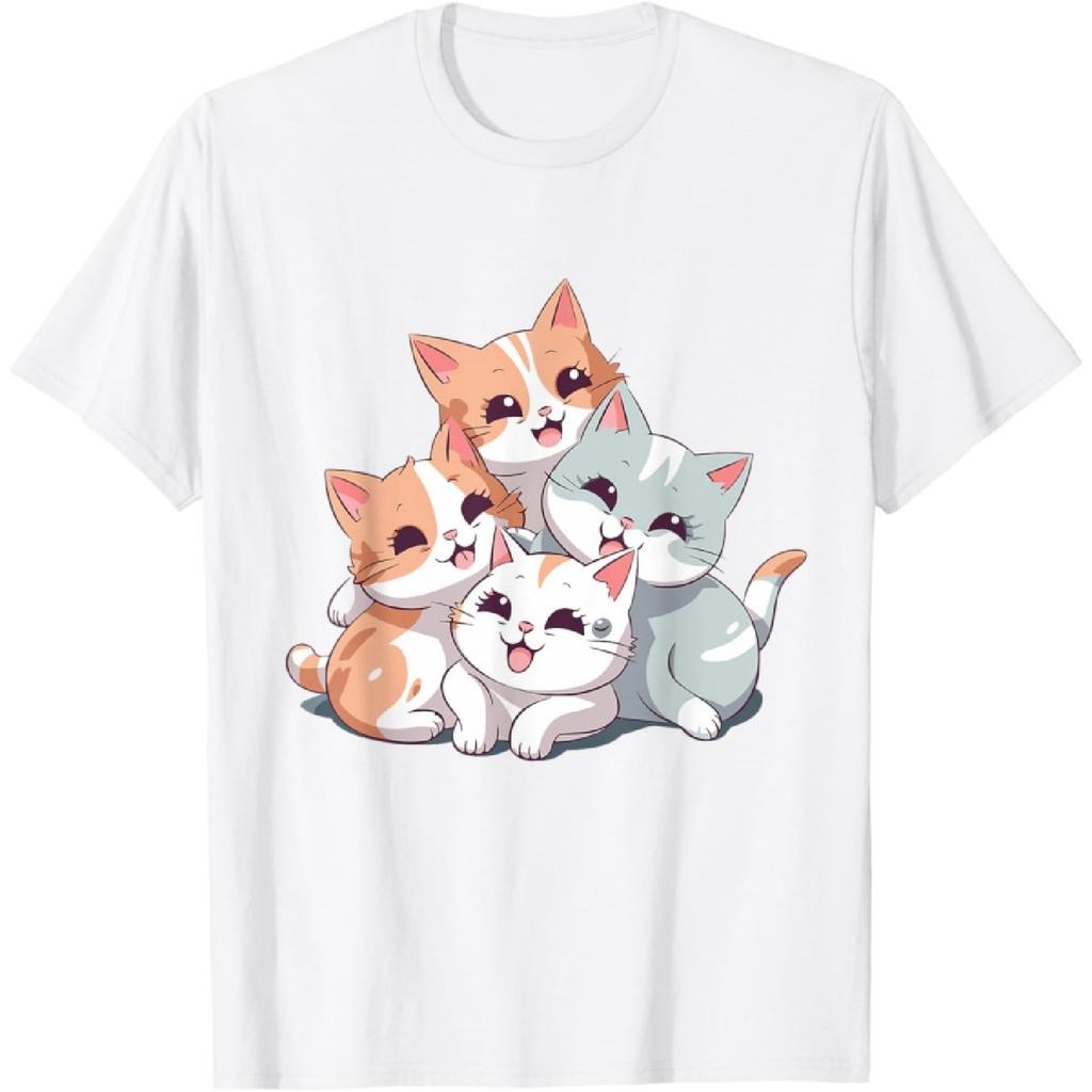 Cat Cute Kitty Pile Cats Anime Kawaii Neko Women Girls T-Shirt