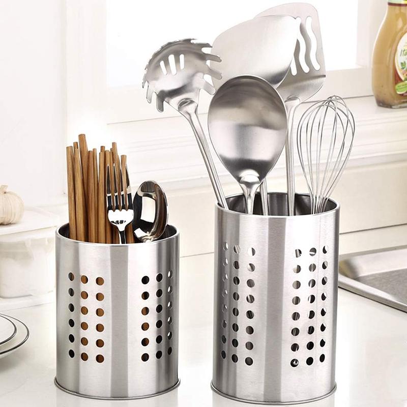 2Pcs Stainless Steel Cutlery Holder Kitchen Utensil Organizer Cooking Utensil Holder Countertop Organizer Cutlery Storage Rack