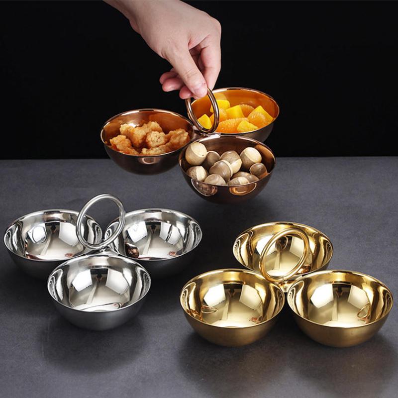 3-Compartment Stainless Steel Snack Plate Round Sauce Dish with Compartments Restaurant Serving Tray Home Decor