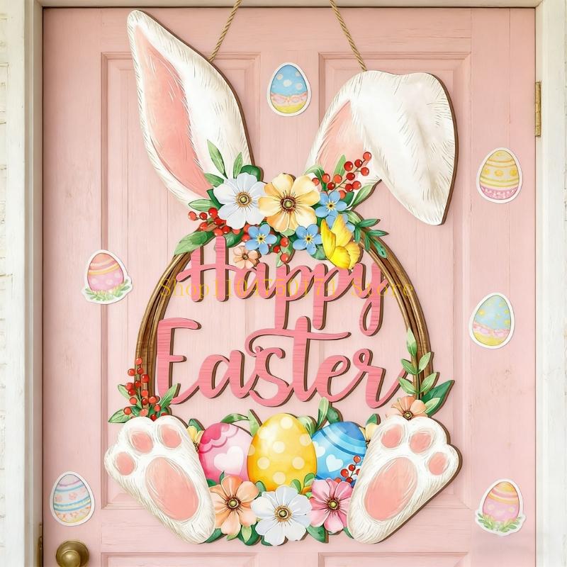 Convenient Wooden Rabbit Hanging Ornament Easy to Place for Easter Decoration top sale