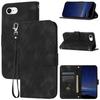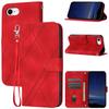 For iPhone 16e Case Imprinted Line Leather Phone Cover with Handy Strap
