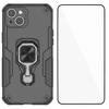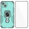 For iPhone 14 Phone Case WANLONFENG PC TPU Back Cover Kickstand with Tempered Glass