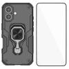 For iPhone 16 Phone Case WANLONFENG PC TPU Back Cover Kickstand with Tempered Glass