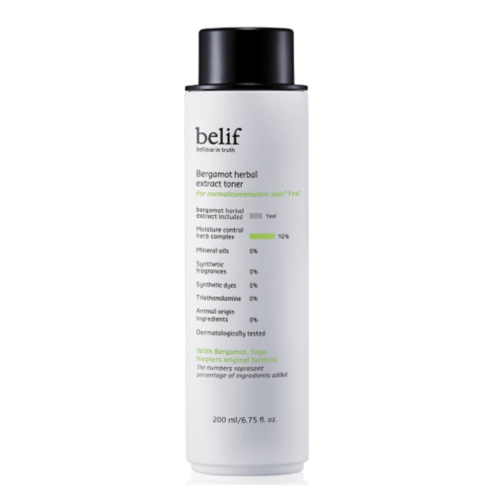 Belif Bergamot Herbal Extract Toner, Korean toner for combination skin, bergamot balancing facial water, hydrating herbal toner, Belif K-beauty skincare, clarifying face toner, pH balancing toner Korea, soothing sage extract toner, daily refreshing facial toner, South Korea luxury cosmetics
