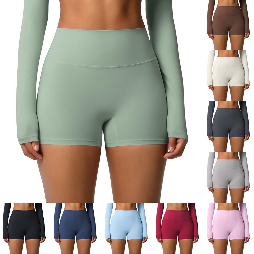Women's Fashion Color High Waist Tight Hip Lifting Yoga Shorts Running Fitness Three Part Pants