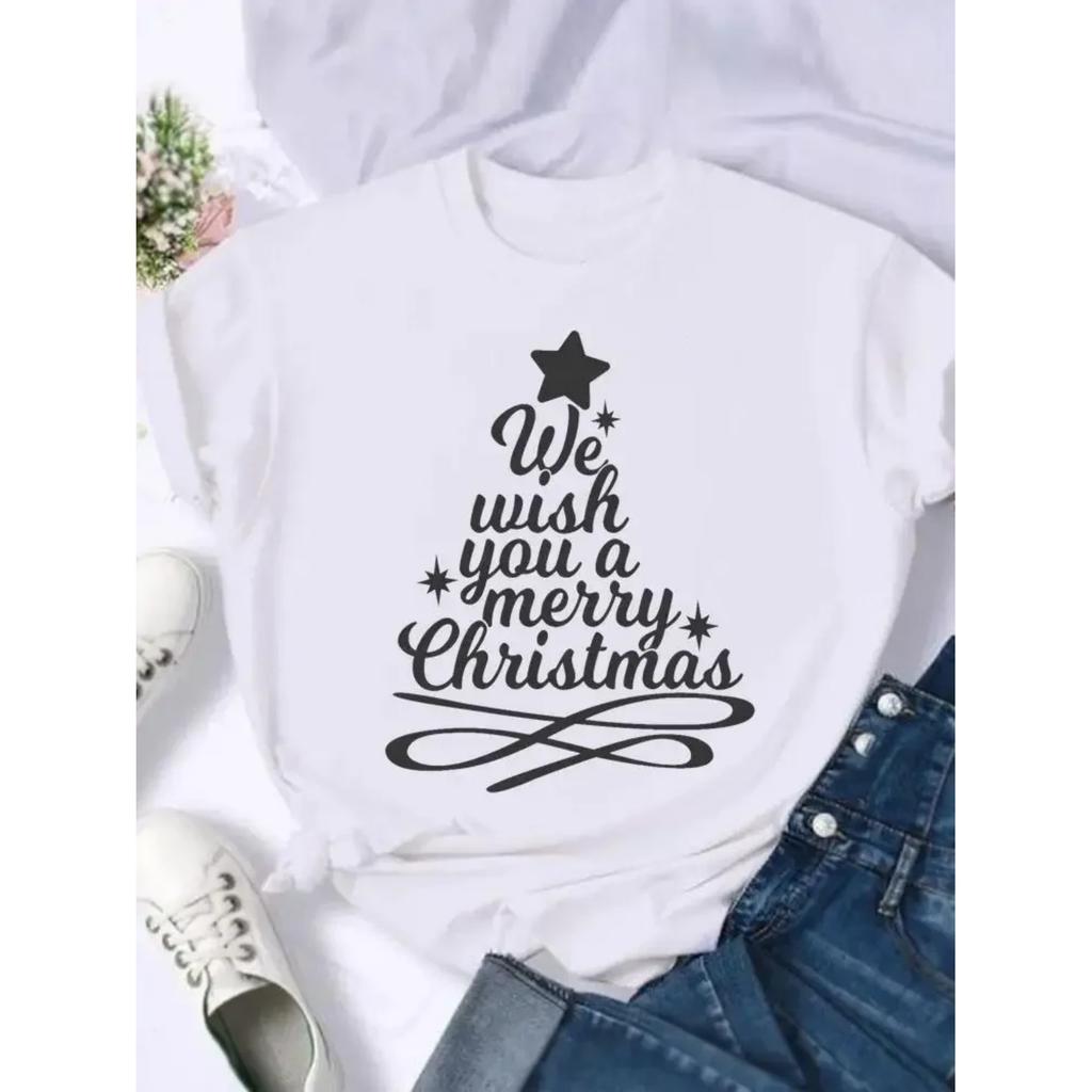 Fashion Female T-shirts Women Holiday Shirt Clothing Print T Top Merry Christmas Lovely Letter Trend 90s New Year Graphic Tee