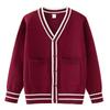 Spring and Autumn Children's Contrast Color Pocket Children's Sweater Cardigan Boy Stripe College Style Girls Sweater Coat