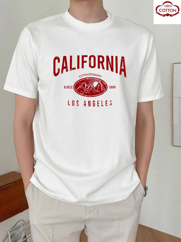 Summer Mens 100 Cotton California Pattern TShirt Retro Bear Star Print Short Sleeve Urban Fashion Street Trend Enthusiast