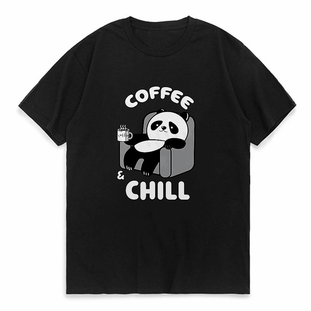 Coffee And Chill Kawaii Panda Clothes Men Hip Hop Oversized Tshirts Breathable Summer TShirts Fashion Cotton Streetwear Tops