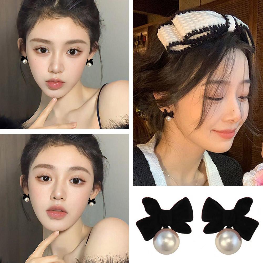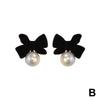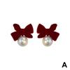 Fashion Flocking Bowtie Pearl Pendant Earrings French Stud Jewelry Earring Ear Bowknot Retro Velvet Bow Red New Year Girl 1PCS