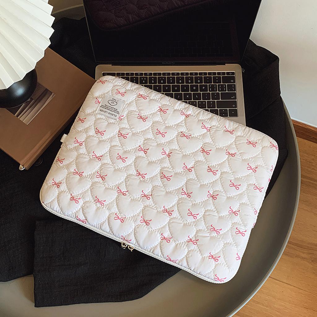 תיק פאפי עם פפיון רקום, כיסוי מגן נפוח עמיד בפני זעזועים, שרוול מחשב נייד מרופד חמוד, תיק אחסון למחשב