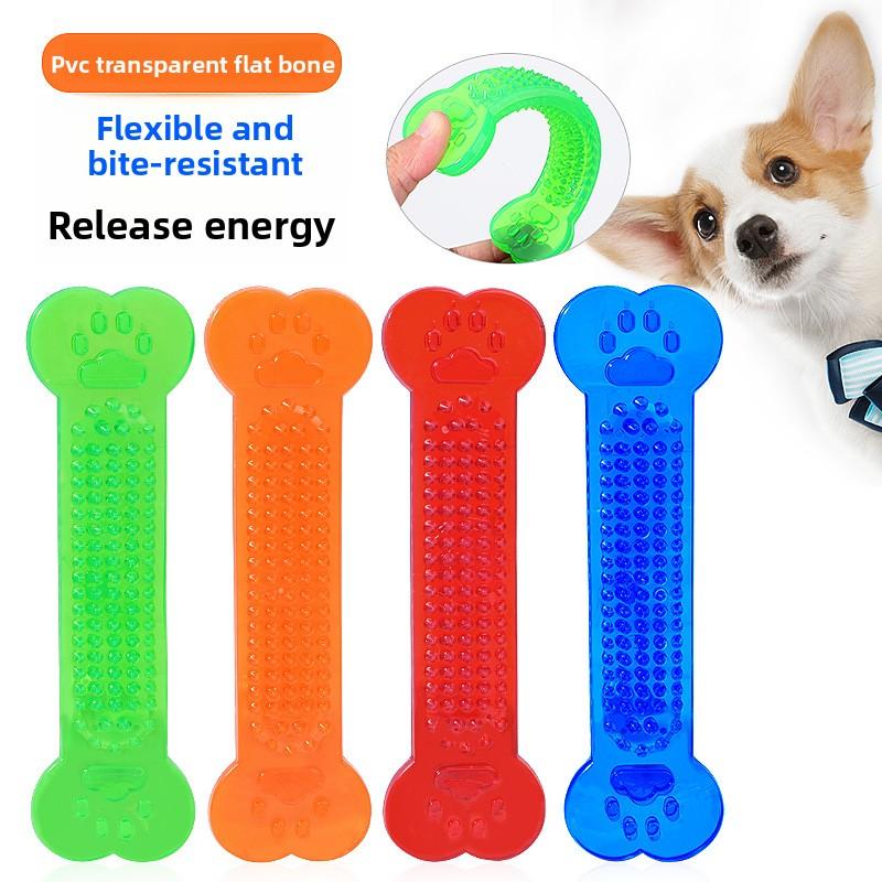 Pet Toy Transparent Flat Bone. Teddy and Golden Retriever Chewable and Grinding Tooth Toy for Dogs.