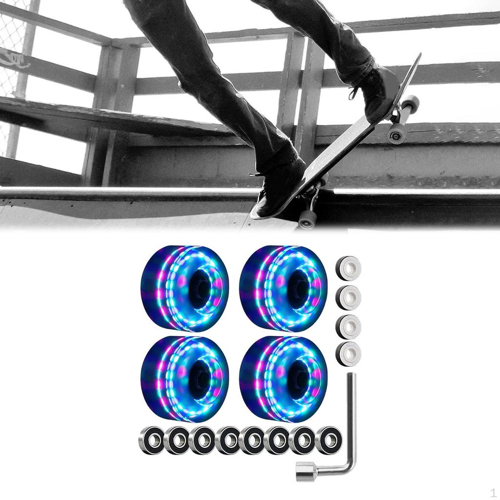 - Luminous skate wheels will give you great visual experience, which performs great on wood, concrete and indoor tile, etc. surfaces.