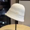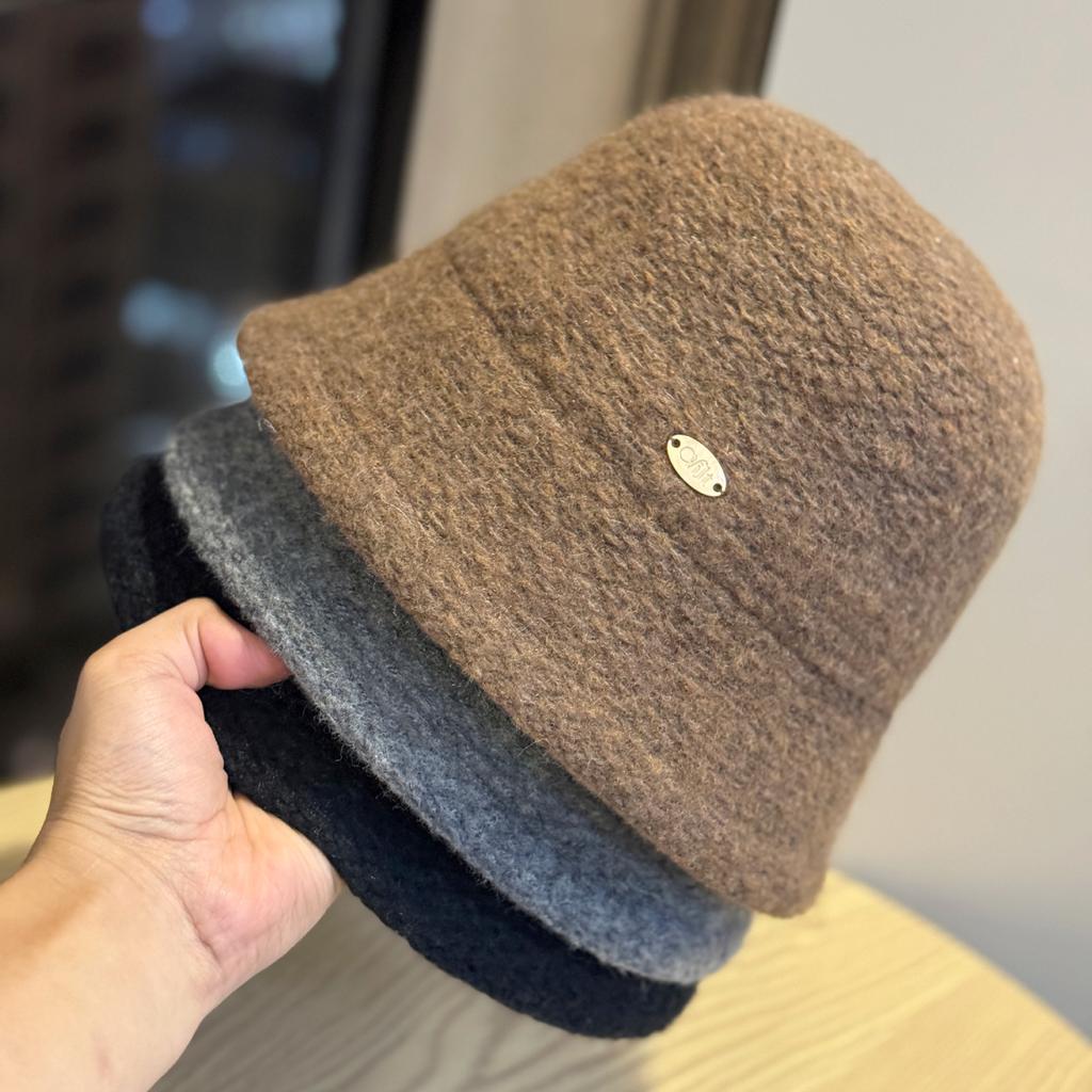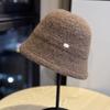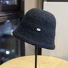 כובע סרוג אלגנטי בסגנון יפני חדש לנשים, סתיו וחורף, חם ויפה, כובע דלי מצמר, כובע פישרמן טרנדי עם סימן עגול קטן