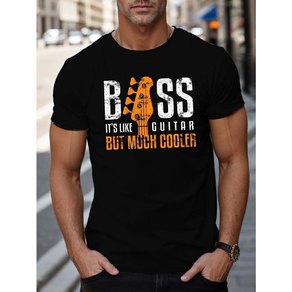 European sizes BASS IT'S LIKE GUITAR BUT MUCH COOLER Letters Print Casual Crew Neck Short Sleeves For Men, Quick-drying Comfy Casual Summer T-Shirt