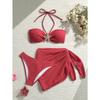 2026 new solid color split swimsuit women's three-piece bikini beach swimsuit set