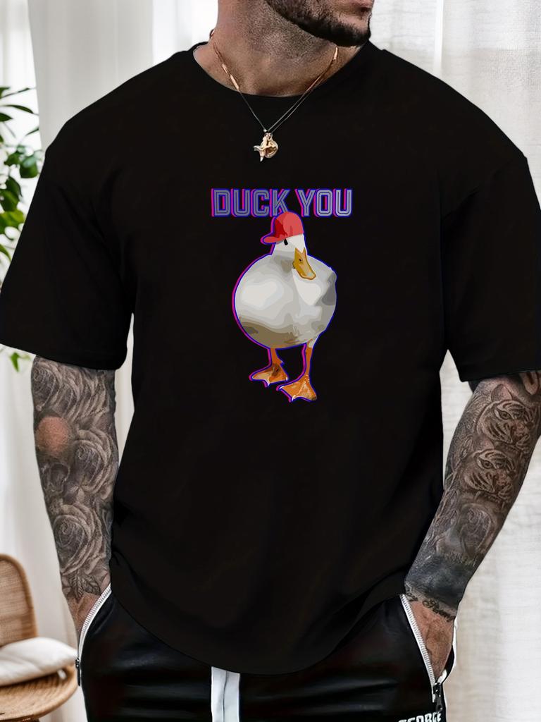Mens Funny Duck Graphic Cotton TShirt DUCK YOU Red Hat Duck Pattern Short Sleeve Breathable Comfort Fit Casual Daily Wear Top