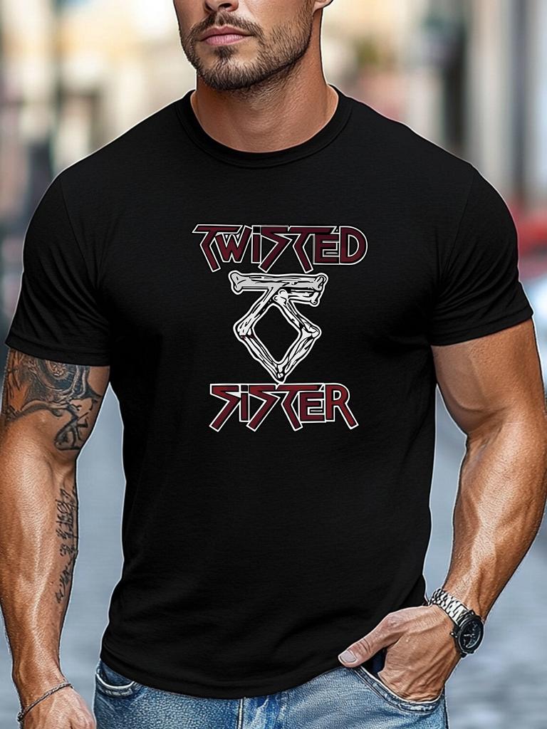 Mens tshirts100 Cotton Twisted Sister Graphic Summer Soft Round Neck Casual Breathable Tee Daily Wear Tops