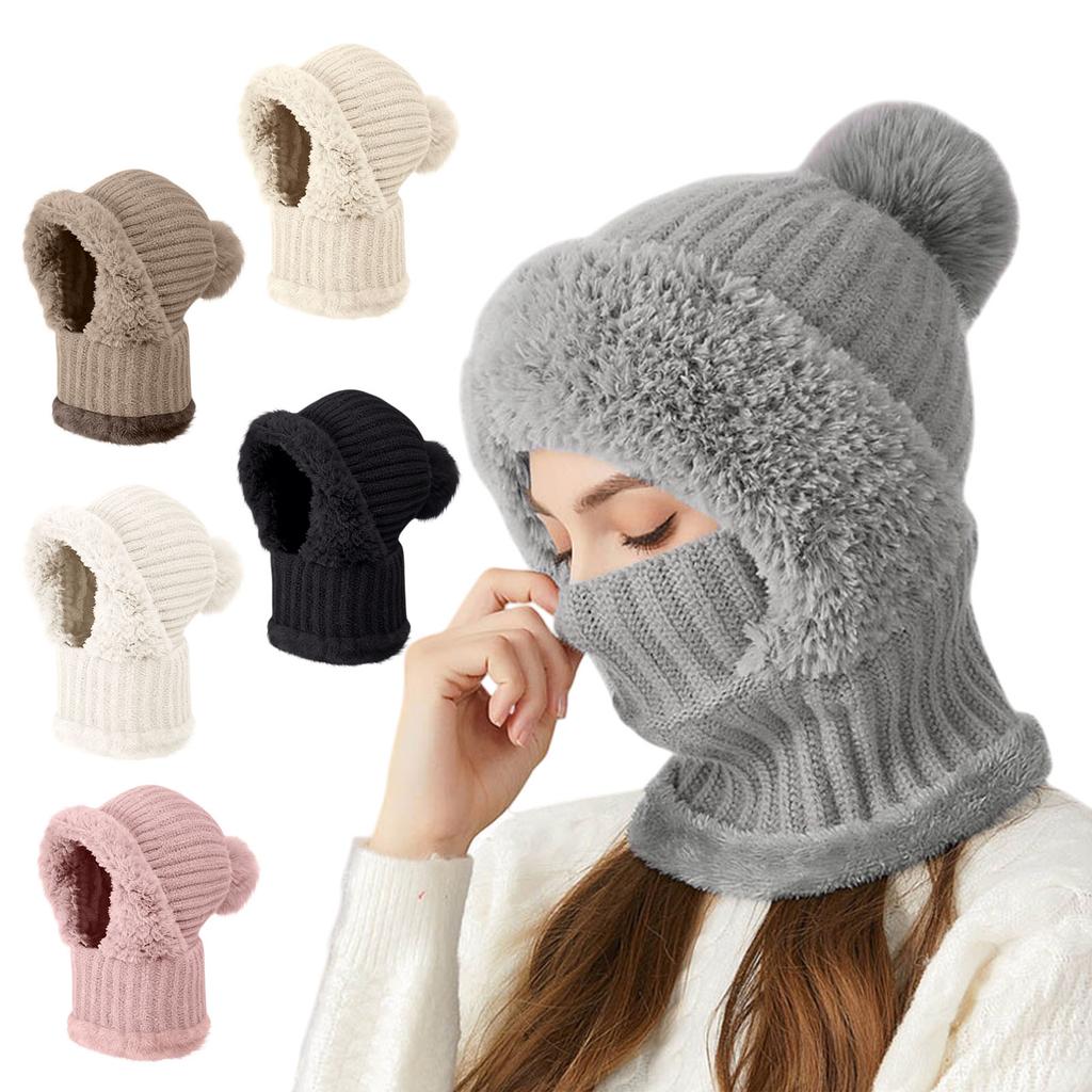 Flannelette Lined Winter Hats Knitted Hat With Ear Protectors Scarf Mask Set Warm Soft Cap For Women