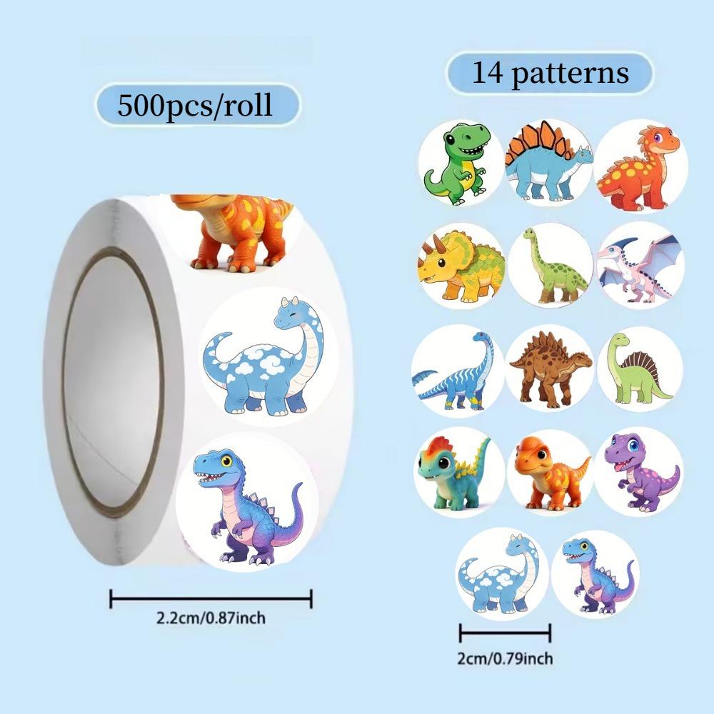 500 sheets/roll Cartoon dinosaur roll sticker Tape Envelope decorative sealing sticker Dinosaur sticker