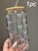 1/2pcs Pink Bow Glass Cup with Bamboo Wood Lid and Straw Reusable Bow Aesthetic Cup for Drinking Coffee Tea Milk Picnic Party